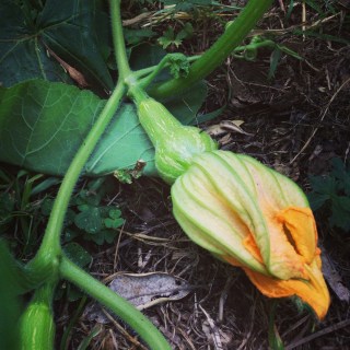 Once the plant has grown considerably, flowers will start to appear on the plant. These are the flowers that will turn into the squash or pumpkins! They look almost identical to courgette flowers. These flowers need to be pollinated, so having flowers growing near by helps to get the vegetables going. Planting peas, beans and sweetcorn around squash and pumpkin is really beneficial to all the plants. This is called companion planting, and often helps to maximize flavour as well as encourage speedy growth.