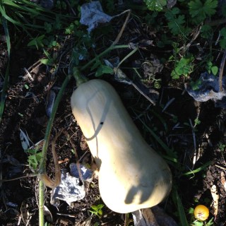 After about a month (or sooner), your squash or pumpkin will have gone from looking like that ^ to looking like the vegetable below (or however it is supposed to look if you aren’t growing a butternut squash). But now this poses the important question, when do I pick my vegetables??