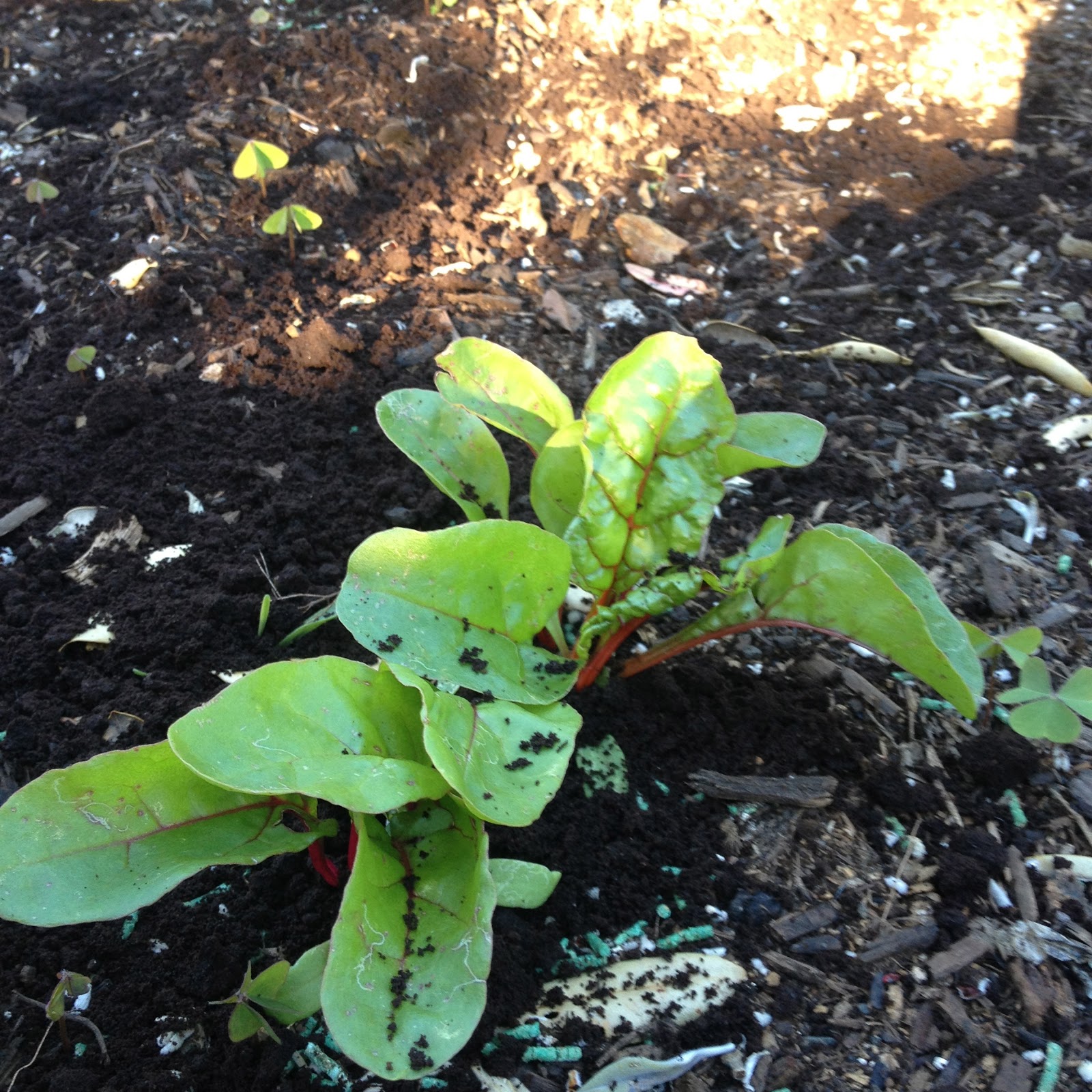 It is so easy to grow from a seed. No kidding. Just plant the seed exactly where you want the plant to be (Swiss Chard doesn’t really do well when transplanted). Plant it in good quality soil, in a spot that gets some good sunshine during the day, but also gets a little bit of shade.