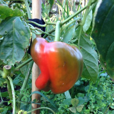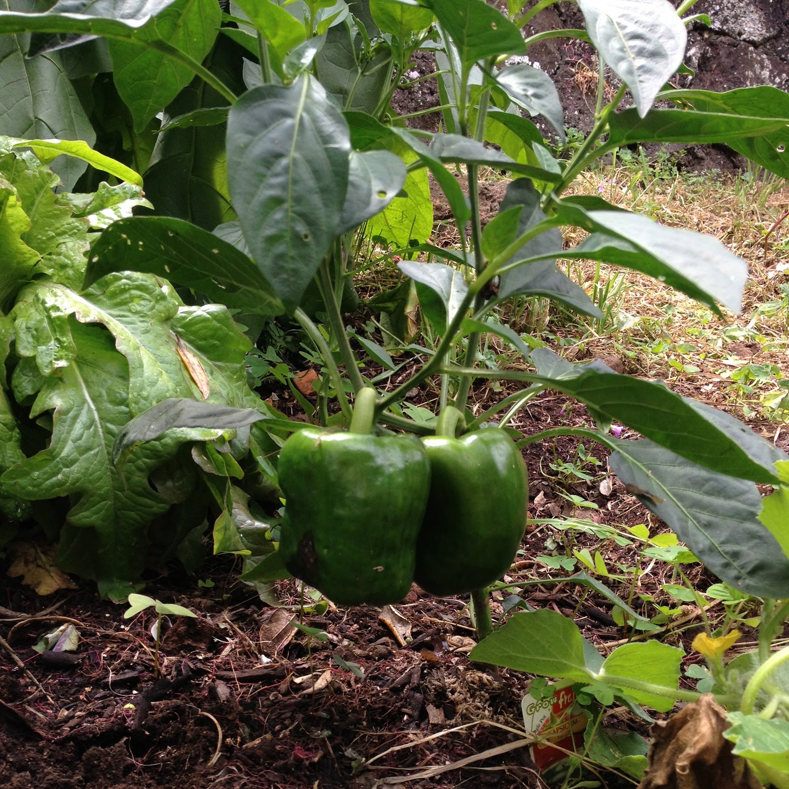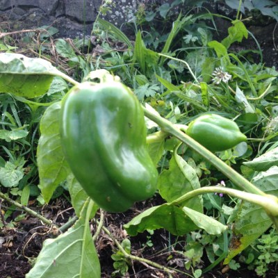Where to grow: Capsicums grow up (to about knee height) rather than out, so you don’t need too much space around the plant. They do need a spot that gets a lot of sunlight, but not too much wind. The capsicums are very heavy on the plants and the strong winds can break the plants as they are quite brittle.