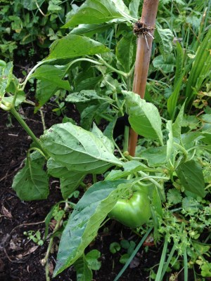 If you bought seedlings, or if you planted it from a seed, the steps are the same from here on! Then move the capsicum plant to the garden, or to a big pot if thats where you are wanting to plant it. Plant the capsicum in a good sized hole in the ground. Pat the soil down around the plant base, and then put a bamboo stake into the ground next to the capsicum plant.