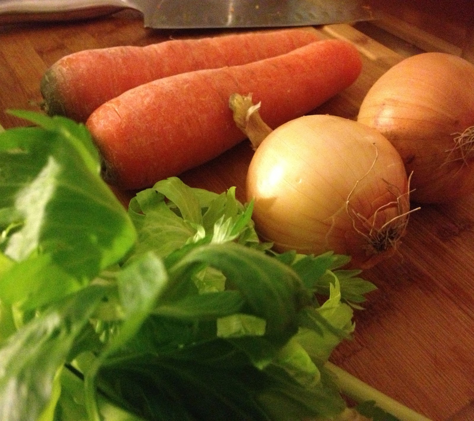 8. Peel the carrot and onion, and dice into centimeter pieces. Wash the celery and cut into the same size pieces. I used the celery leaves as well because I didn’t wanna waste them! But you can leave them out if you want.