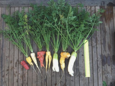 I love carrots!! They are a simply wonderful vegetable that can often test your patience, but they are so worth it! Its hard growing something that you can’t look at and see its progress, and so when one carrot is ready, I get so excited and pick them all. (If you wanna know more about growing carrots, check out my previous post about carrots!) This week, I picked some carrots that I had (sorta) forgotten about and some parsnips I had definitely forgotten about! It was so exciting!! See!! Look at me with some of my babies!