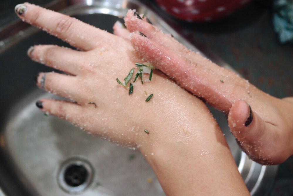 Then use the scrub on your hands, and rinse off after exfoliating.