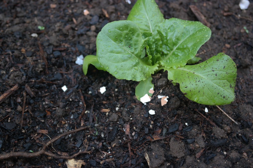 2. Place the egg shells around the base of each plant, or if you have a lot, then sprinkle all over your soil.